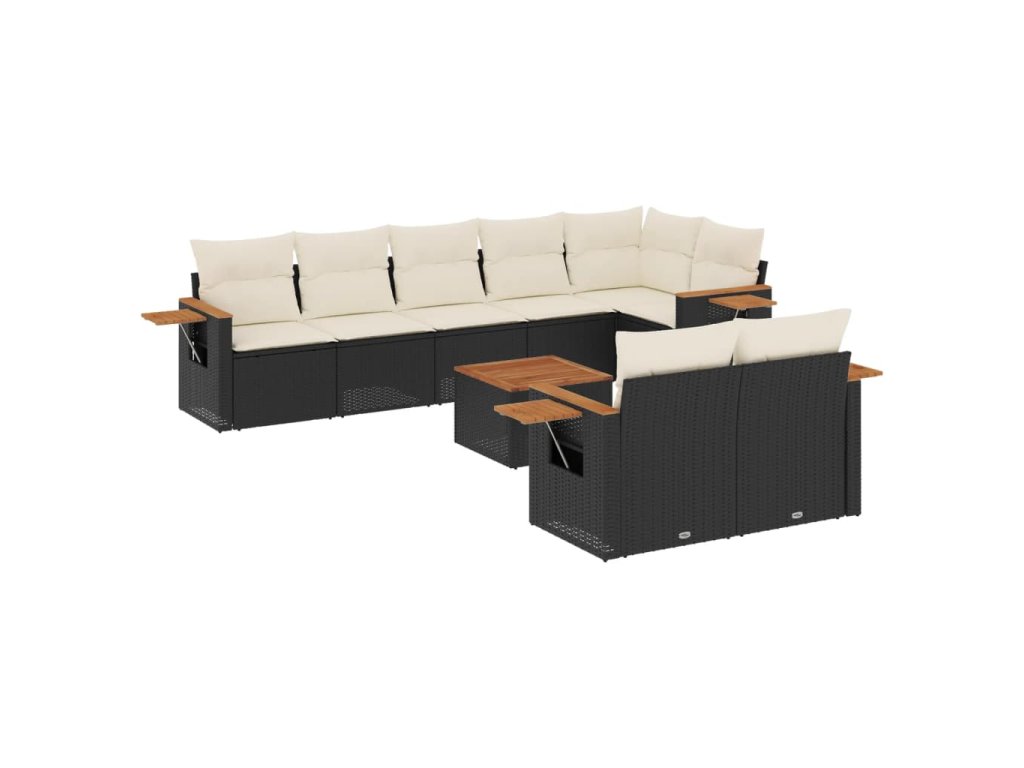 9dílná zahradní sedací souprava s poduškami černá polyratan 3226994