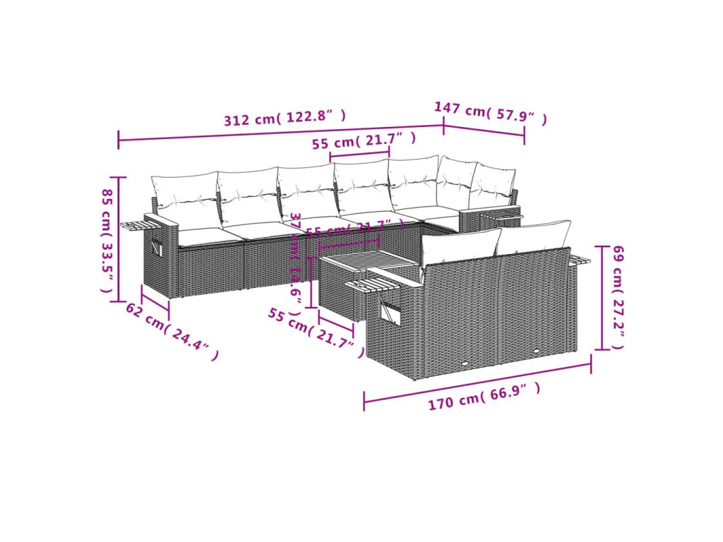 Tato zahradní sedací souprava je dokonalým doplňkem vaší zahrady, terasy nebo dvorku a poskytne vám pohodlné a příjemné místo, kde si můžete povídat s rodinou a přáteli nebo jen tak odpočívat a užívat si pobyt venku.