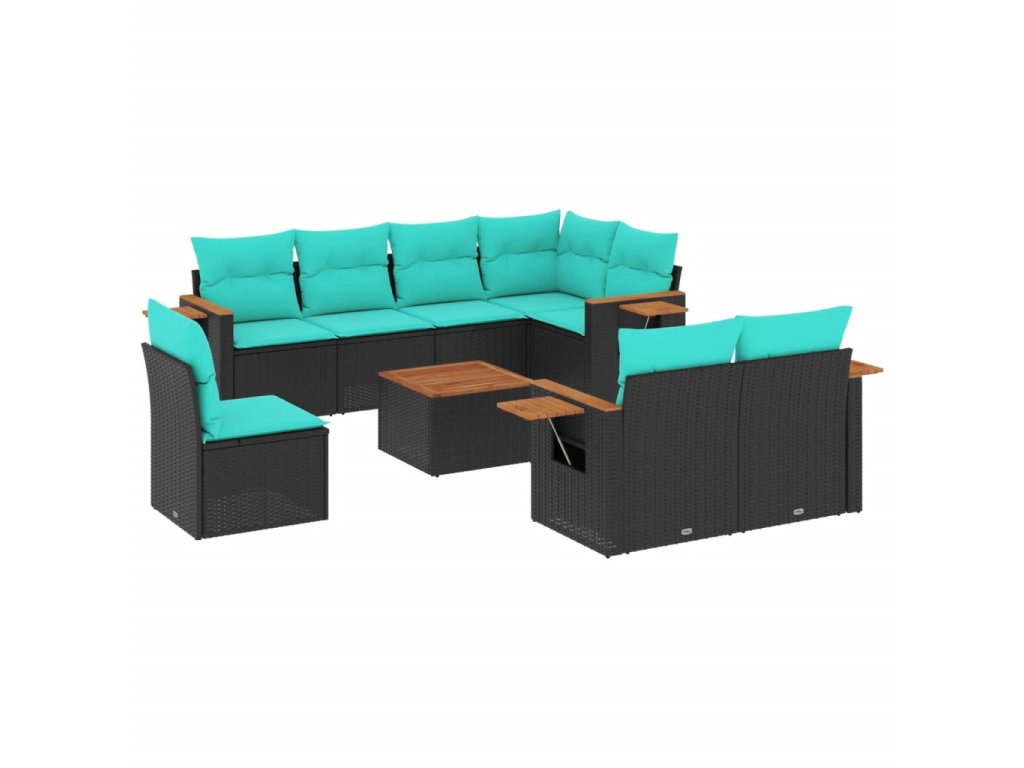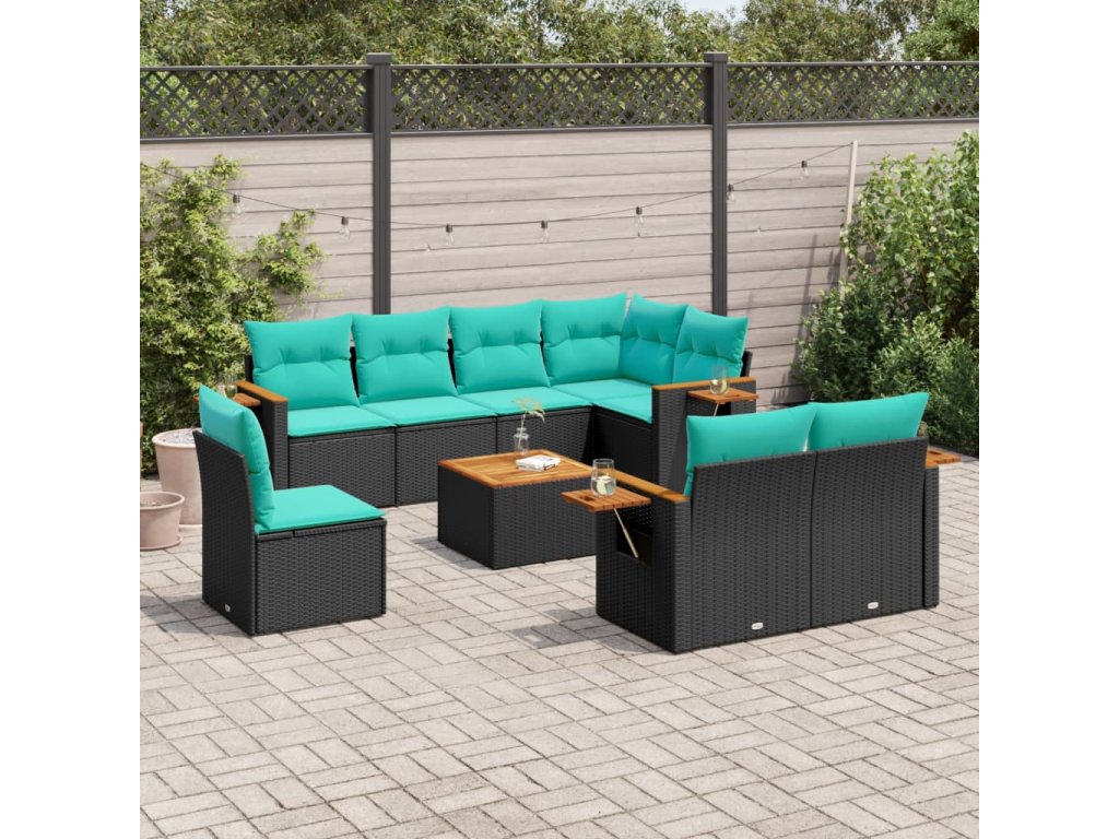 9dílná zahradní sedací souprava s poduškami černá polyratan 3227009