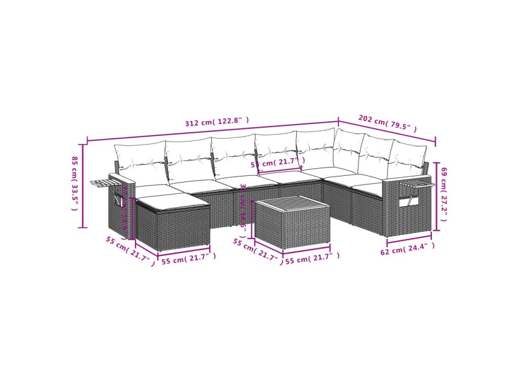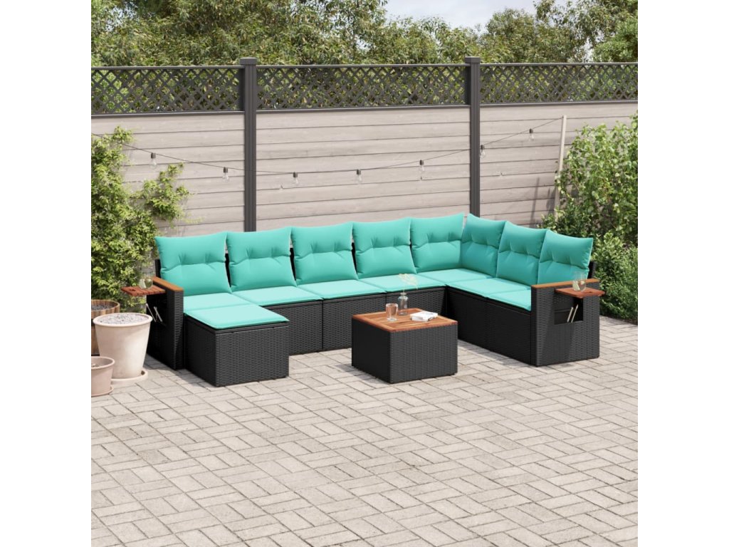9dílná zahradní sedací souprava s poduškami černá polyratan 3227093