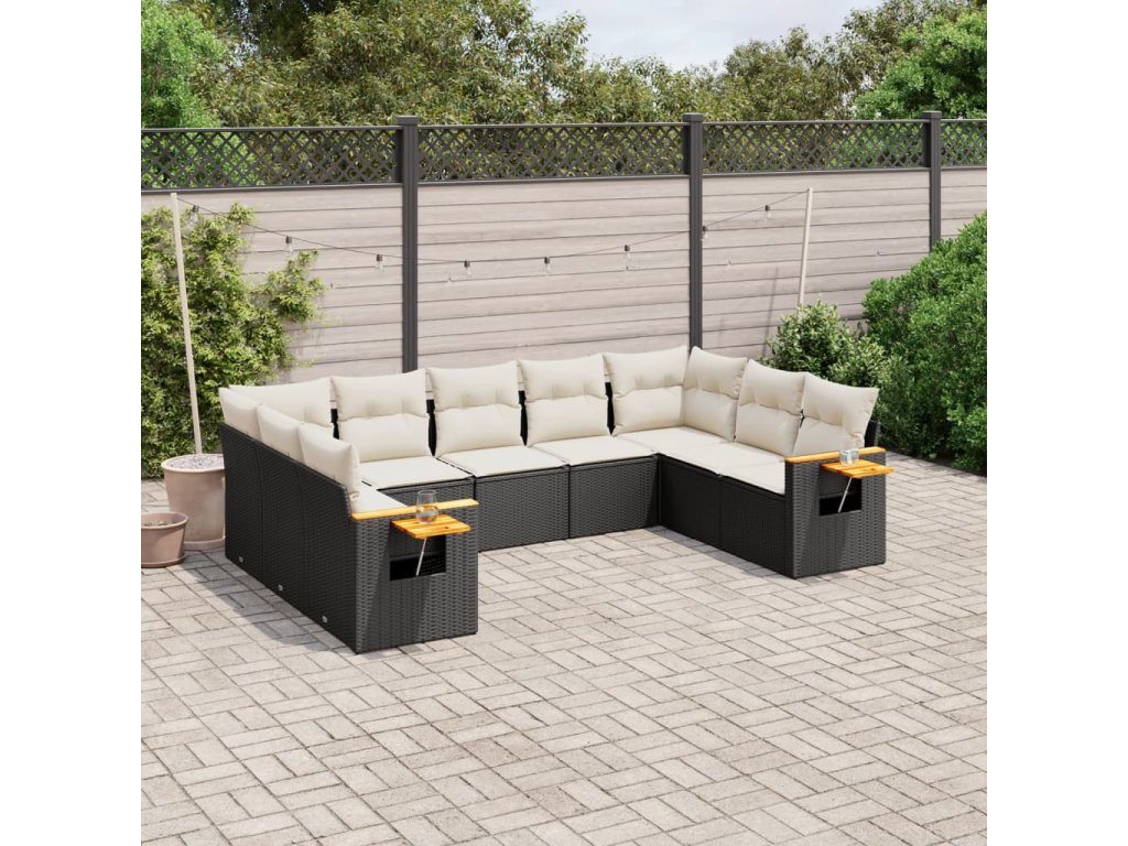 9dílná zahradní sedací souprava s poduškami černá polyratan 3227113
