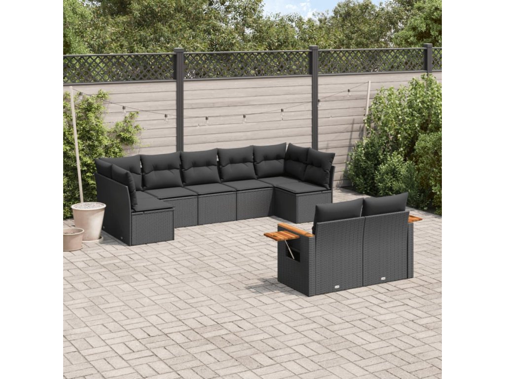 9dílná zahradní sedací souprava s poduškami černá polyratan 3227126