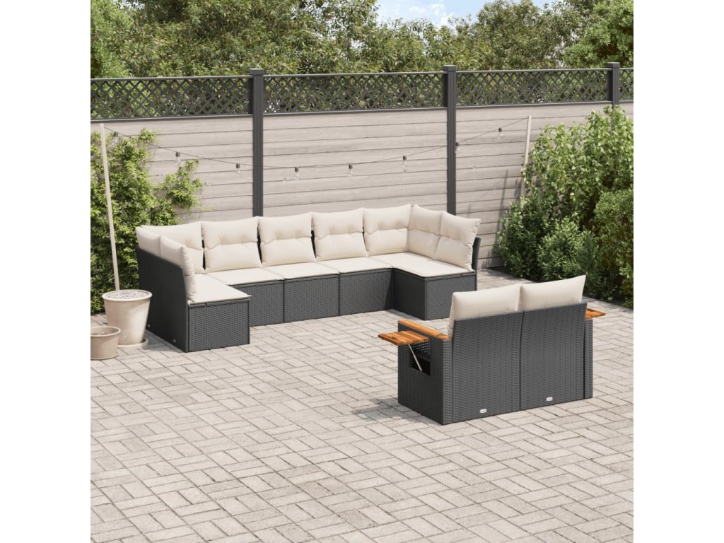 9dílná zahradní sedací souprava s poduškami černá polyratan 3227127