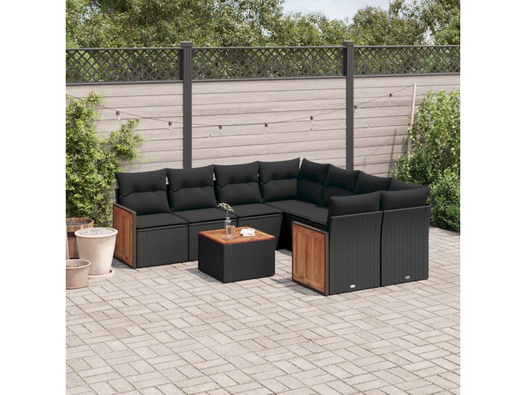 9dílná zahradní sedací souprava s poduškami černá polyratan 3227504