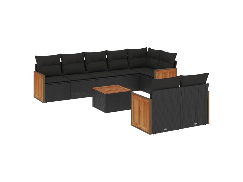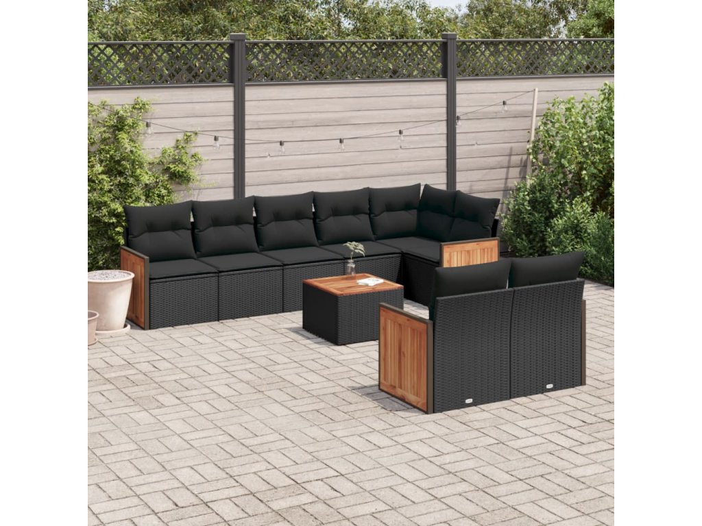 9dílná zahradní sedací souprava s poduškami černá polyratan 3227833