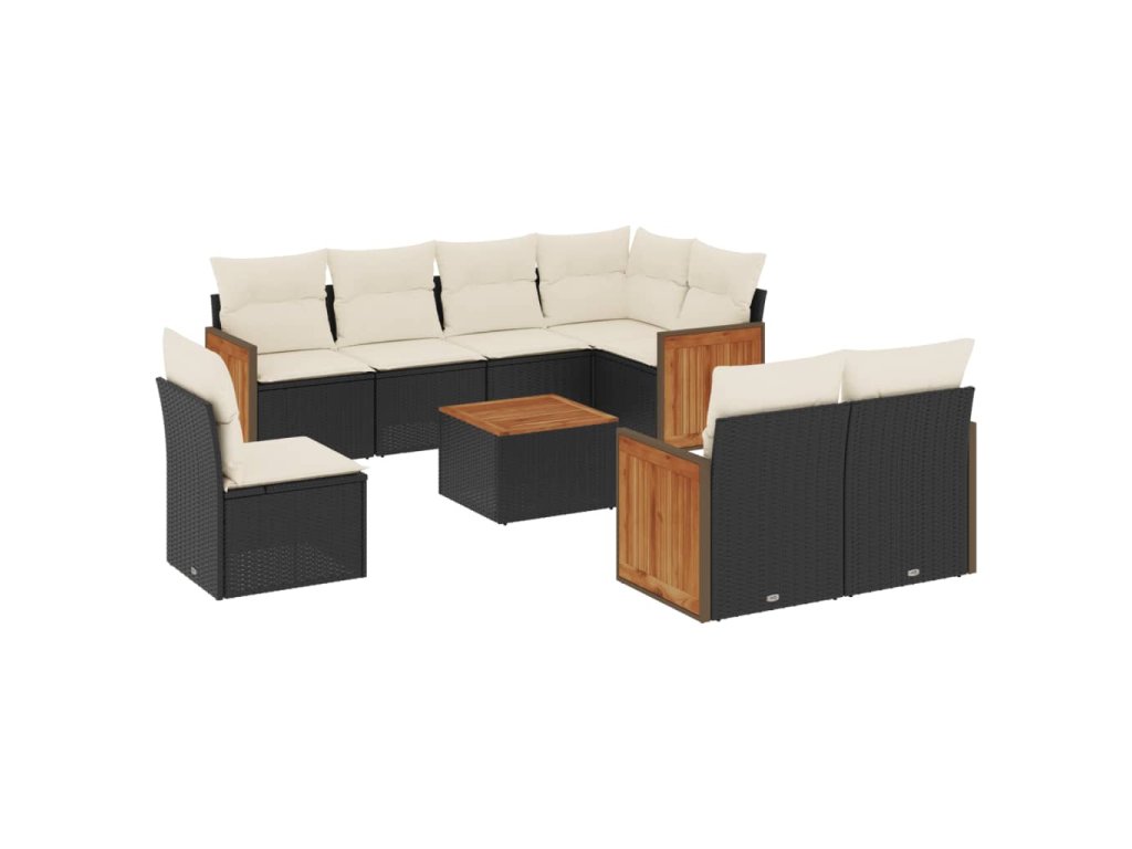 9dílná zahradní sedací souprava s poduškami černá polyratan 3227848