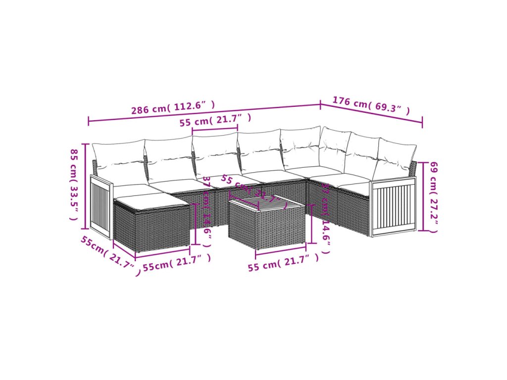 Tato zahradní sedací souprava je dokonalým doplňkem vaší zahrady, terasy nebo dvorku a poskytne vám pohodlné a příjemné místo, kde si můžete povídat s rodinou a přáteli nebo jen tak odpočívat a užívat si pobyt venku.