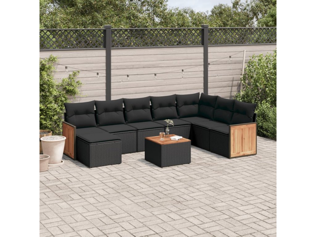 9dílná zahradní sedací souprava s poduškami černá polyratan 3227931