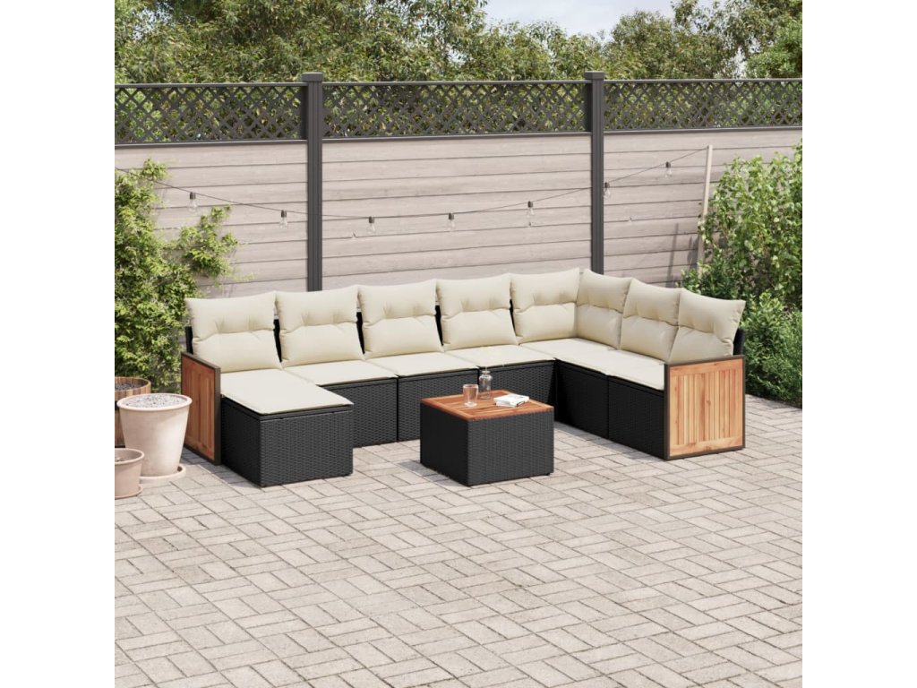 9dílná zahradní sedací souprava s poduškami černá polyratan 3227932