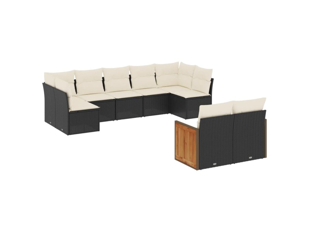 9dílná zahradní sedací souprava s poduškami černá polyratan 3227967