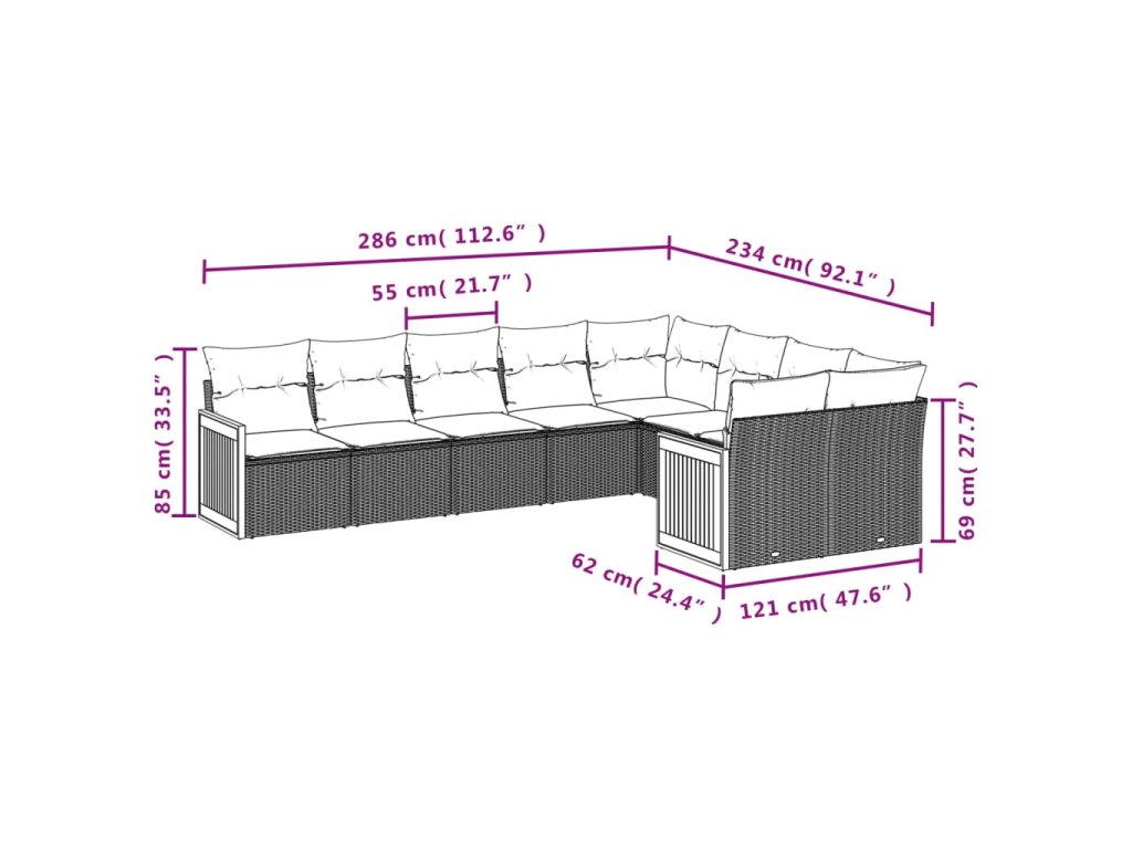 9dílná zahradní sedací souprava s poduškami černá polyratan 3227981