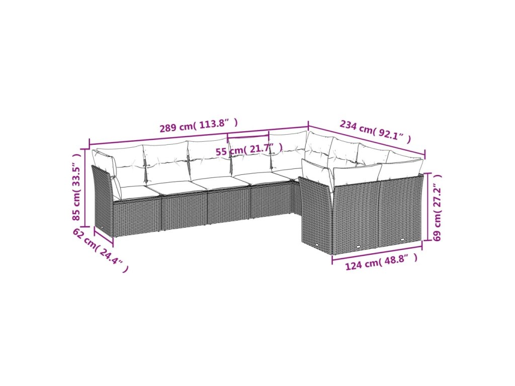9dílná zahradní sedací souprava s poduškami černá polyratan 3250005