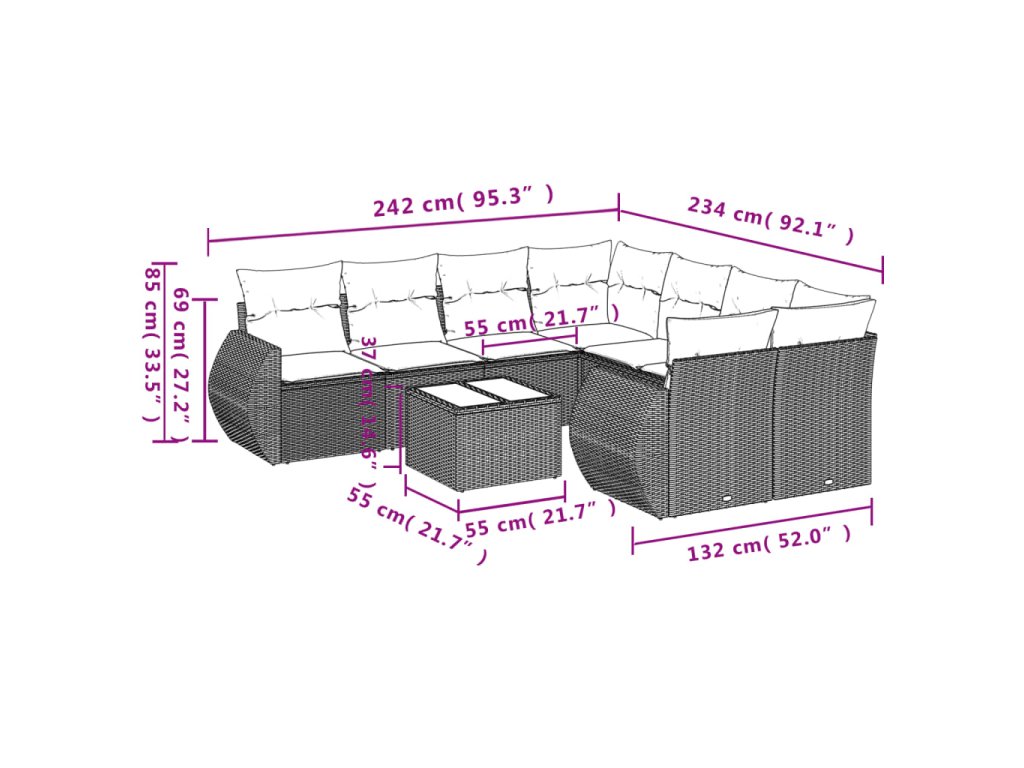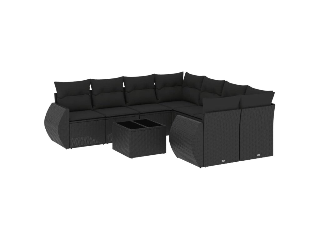 9dílná zahradní sedací souprava s poduškami černá polyratan 3253492