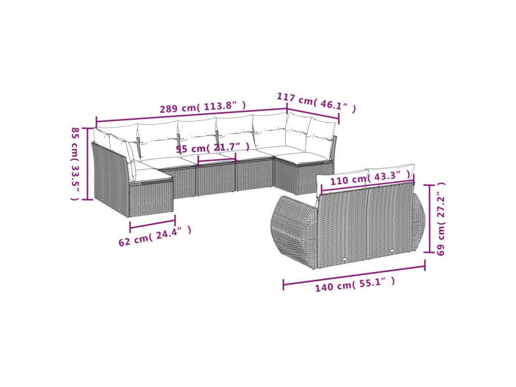 9dílná zahradní sedací souprava s poduškami černá polyratan 3254152
