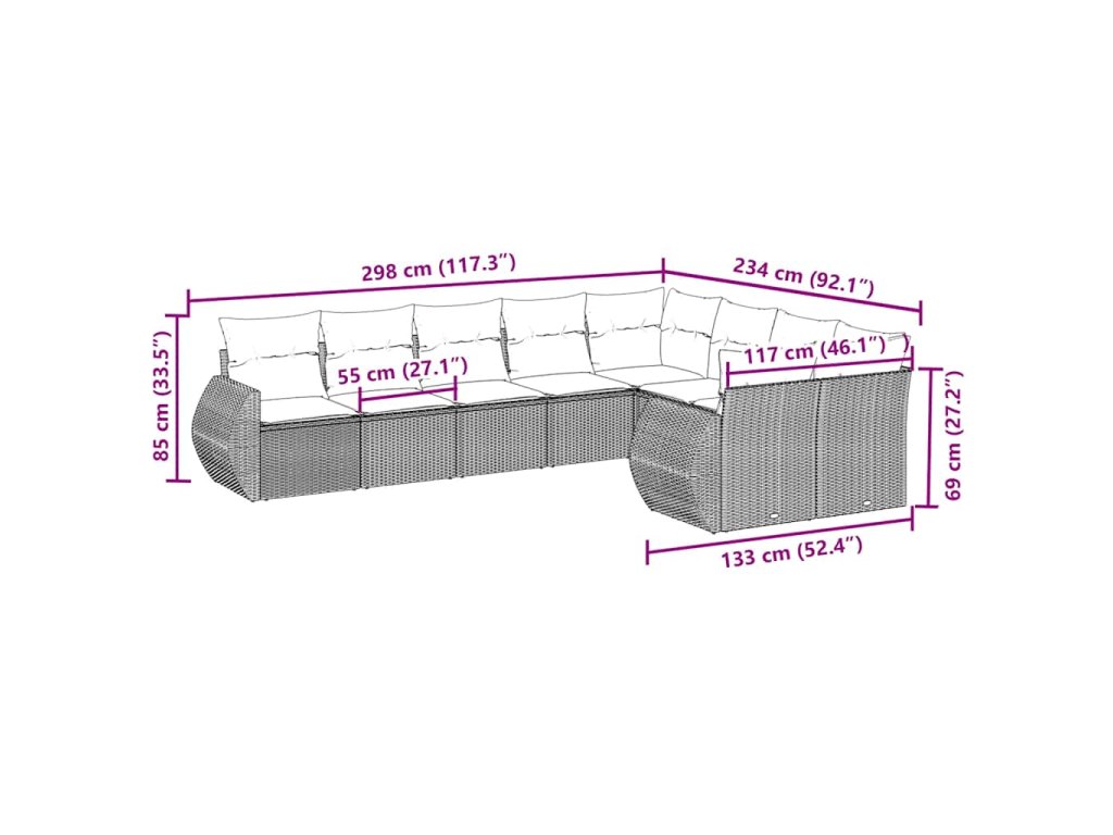 Tato zahradní sedací souprava je dokonalým doplňkem vaší zahrady, terasy nebo dvorku a poskytne vám pohodlné a příjemné místo, kde si můžete povídat s rodinou a přáteli nebo jen tak odpočívat a užívat si pobyt venku.