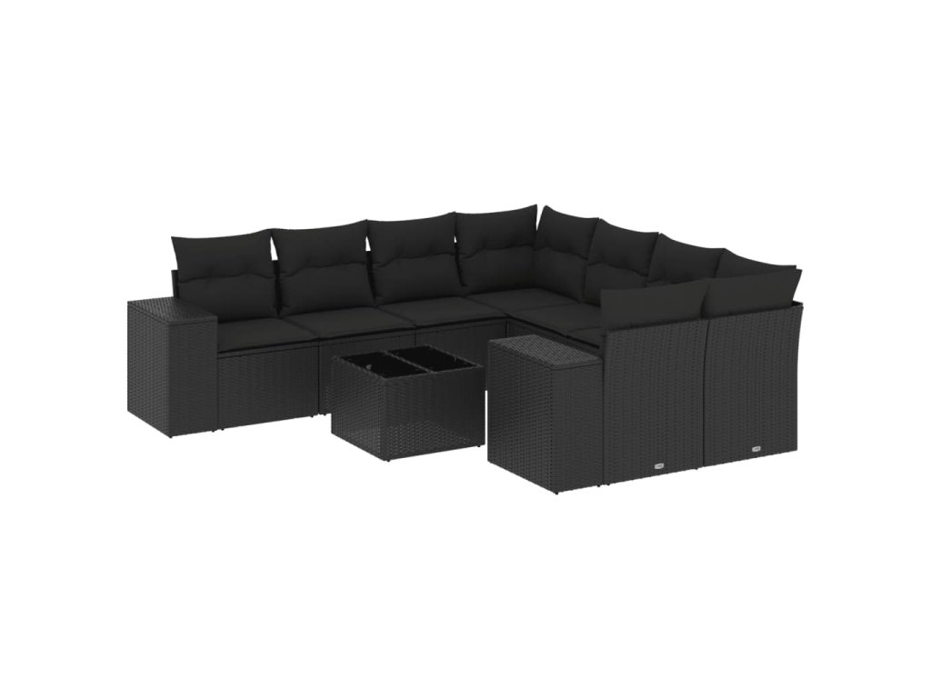 9dílná zahradní sedací souprava s poduškami černá polyratan 3254692