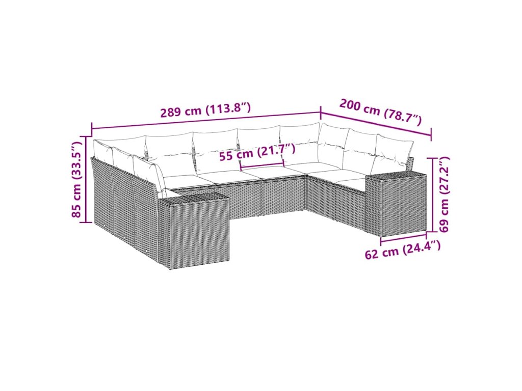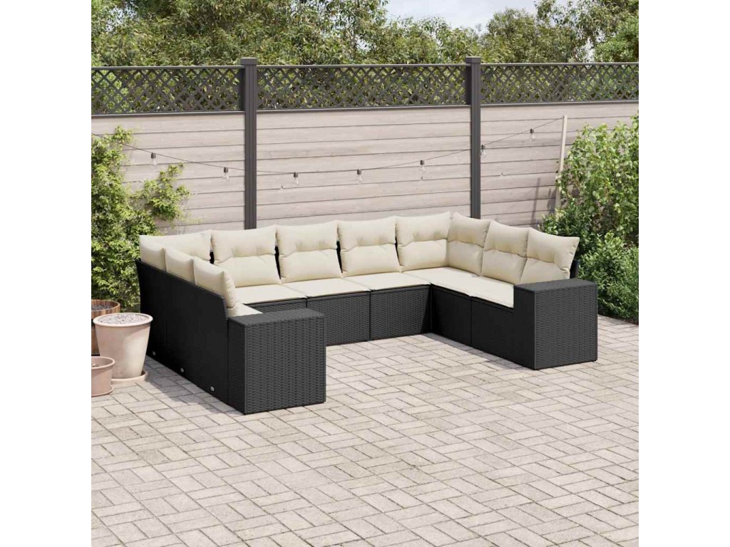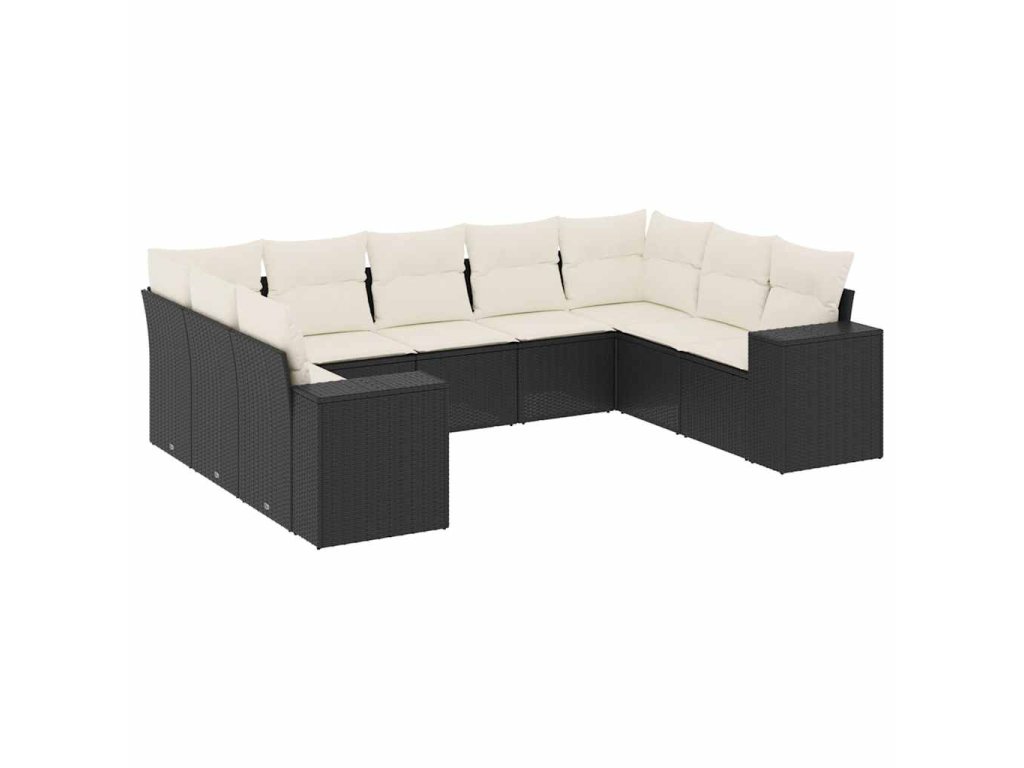 9dílná zahradní sedací souprava s poduškami černá polyratan 3255333