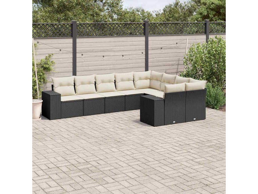 9dílná zahradní sedací souprava s poduškami černá polyratan 3255373