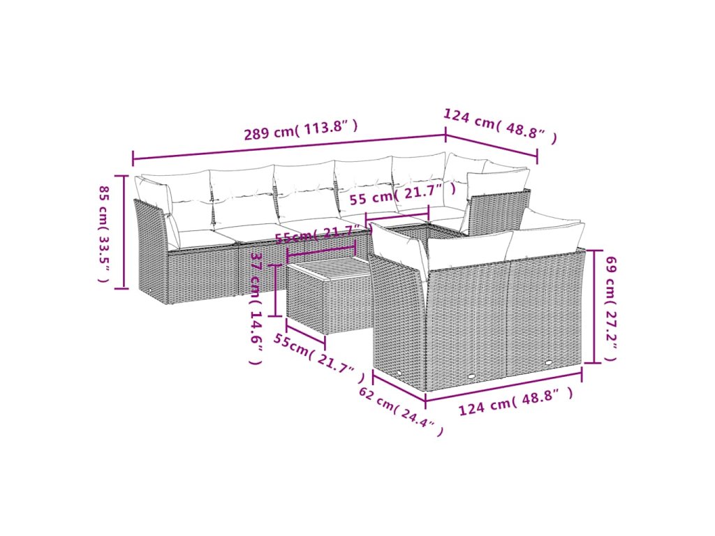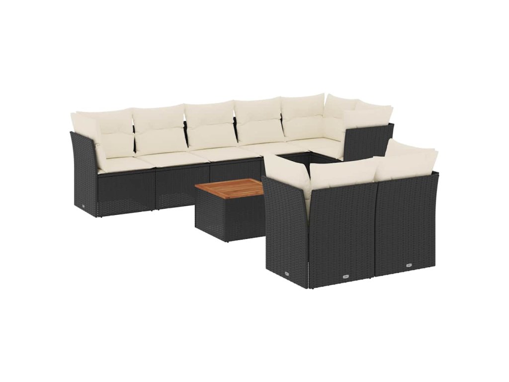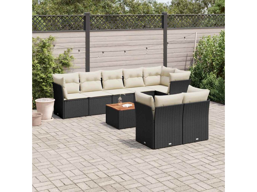 9dílná zahradní sedací souprava s poduškami černá polyratan 3256063