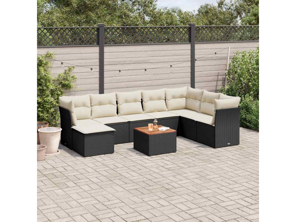 9dílná zahradní sedací souprava s poduškami černá polyratan 3256112