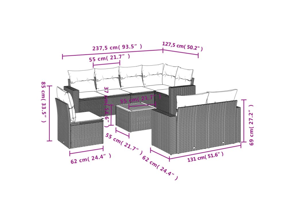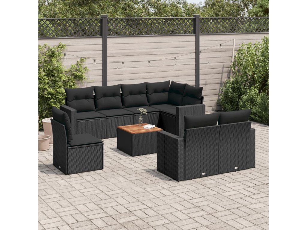 9dílná zahradní sedací souprava s poduškami černá polyratan 3256489