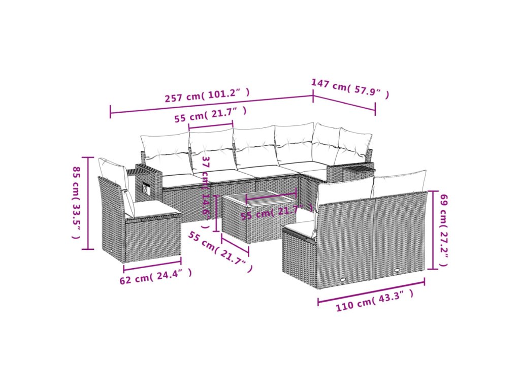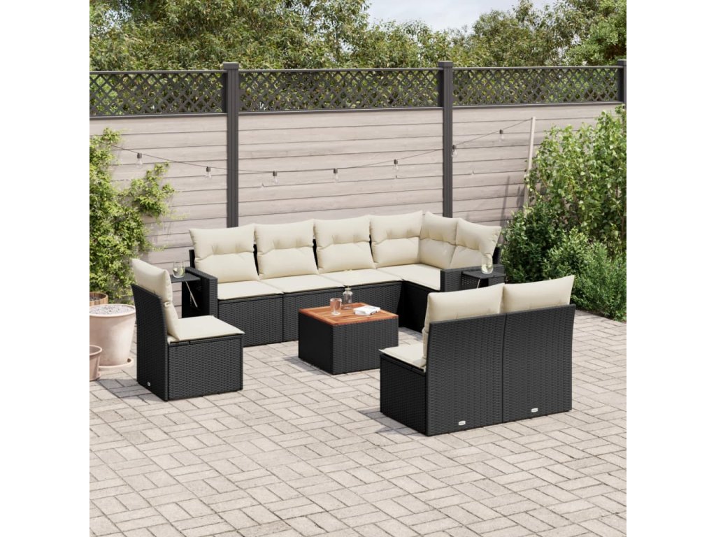 9dílná zahradní sedací souprava s poduškami černá polyratan 3256931