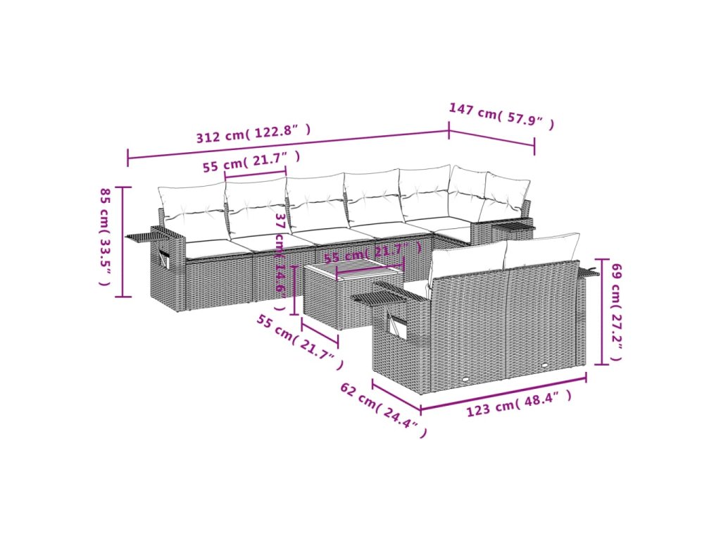 Tato zahradní sedací souprava je dokonalým doplňkem vaší zahrady, terasy nebo dvorku a poskytne vám pohodlné a příjemné místo, kde si můžete povídat s rodinou a přáteli nebo jen tak odpočívat a užívat si pobyt venku.