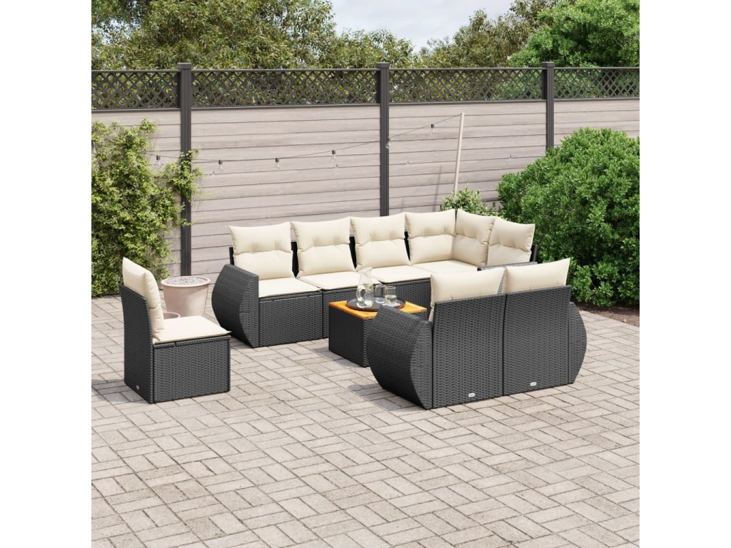 9dílná zahradní sedací souprava s poduškami černá polyratan 3257428