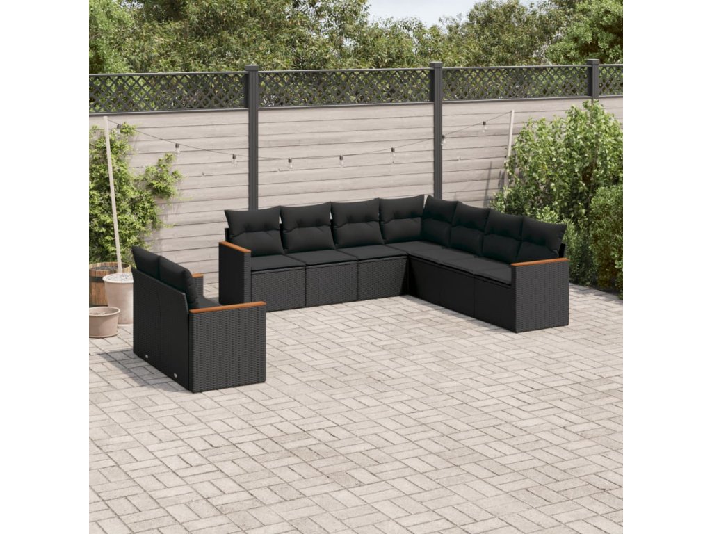 9dílná zahradní sedací souprava s poduškami černá polyratan 3258499