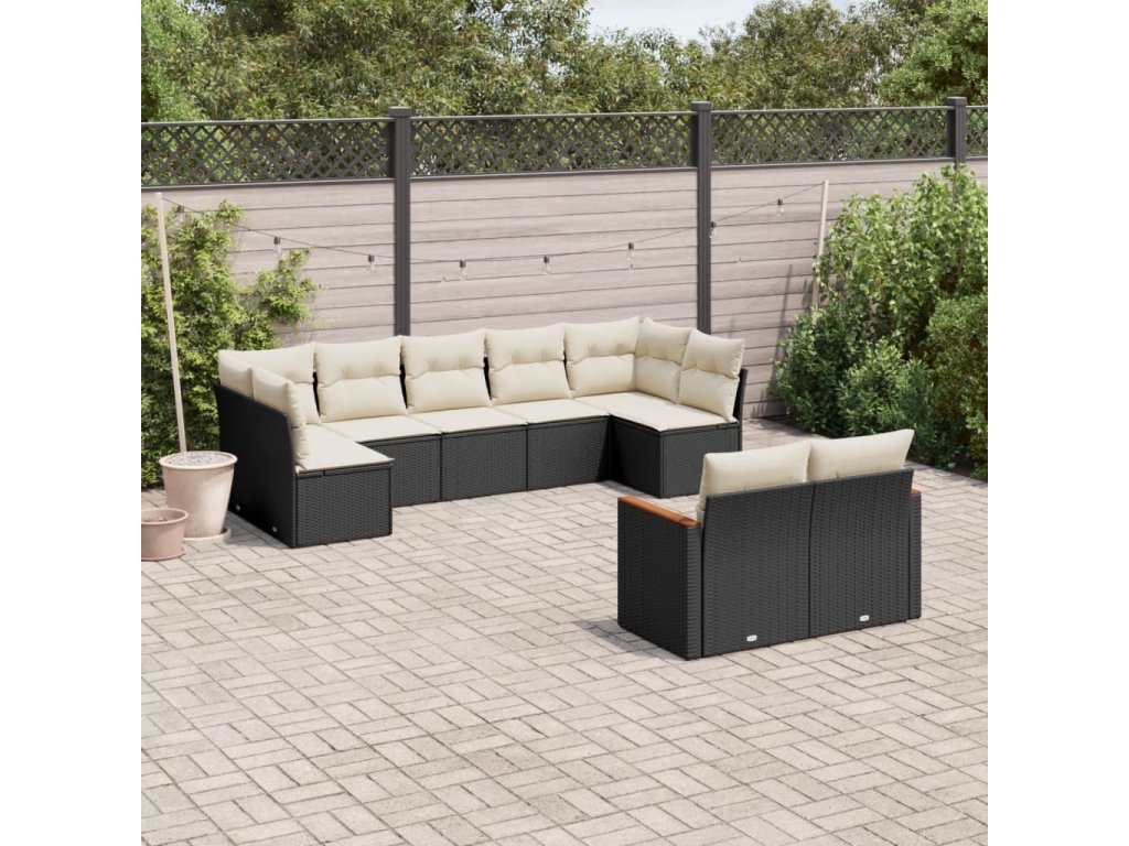 9dílná zahradní sedací souprava s poduškami černá polyratan 3258689