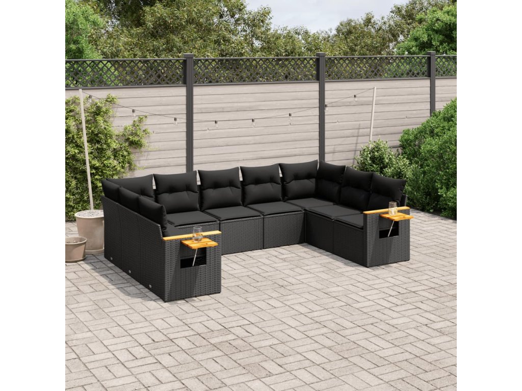 9dílná zahradní sedací souprava s poduškami černá polyratan 3259514