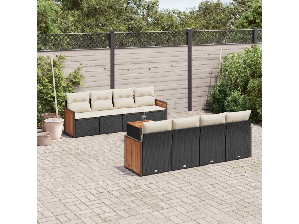 9dílná zahradní sedací souprava s poduškami černá polyratan 3259900