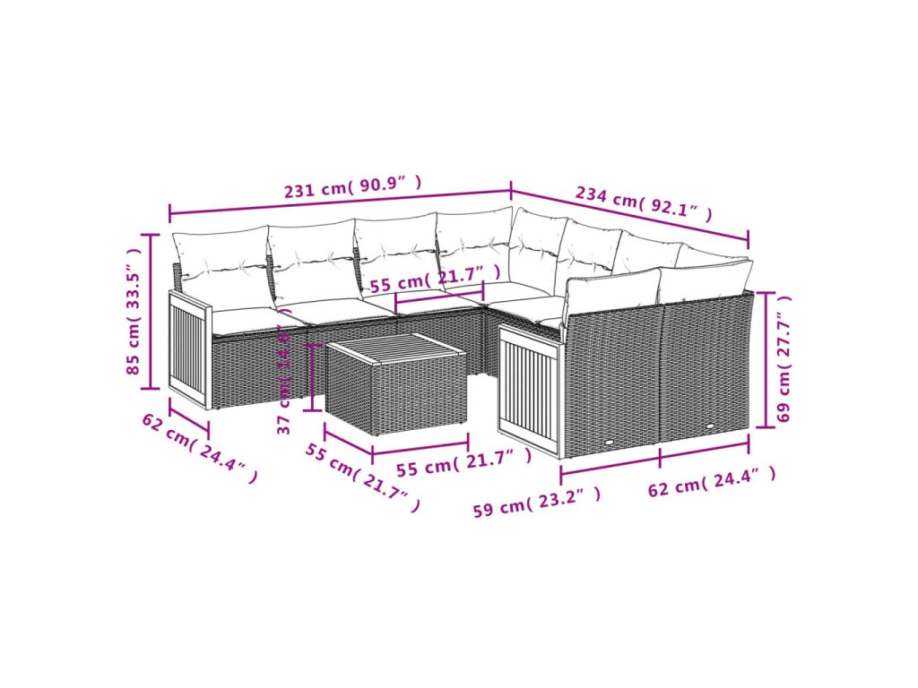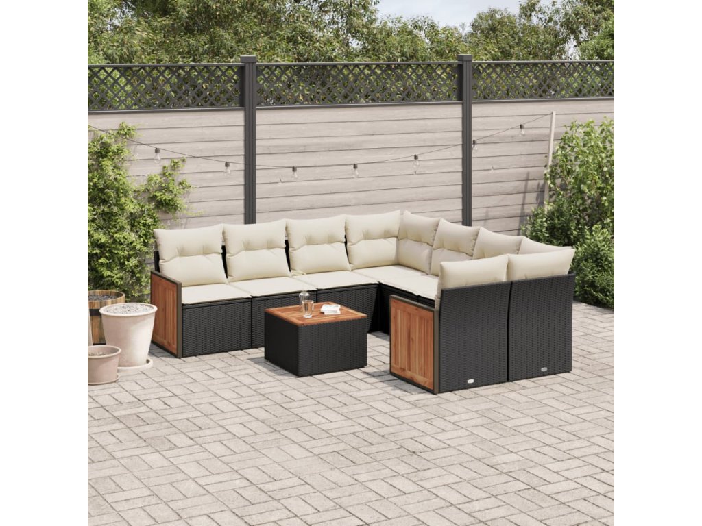 9dílná zahradní sedací souprava s poduškami černá polyratan 3259907
