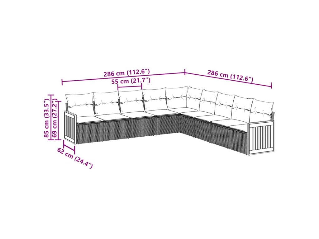 Tato zahradní sedací souprava je dokonalým doplňkem vaší zahrady, terasy nebo dvorku a poskytne vám pohodlné a příjemné místo, kde si můžete povídat s rodinou a přáteli nebo jen tak odpočívat a užívat si pobyt venku.