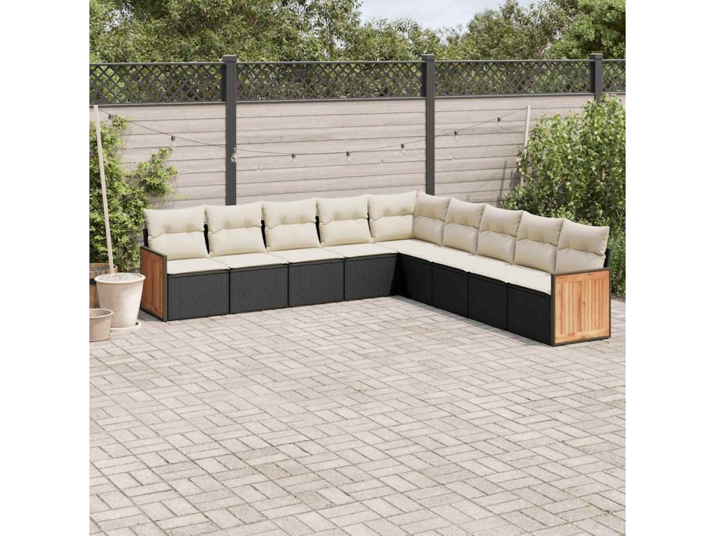 9dílná zahradní sedací souprava s poduškami černá polyratan 3260138
