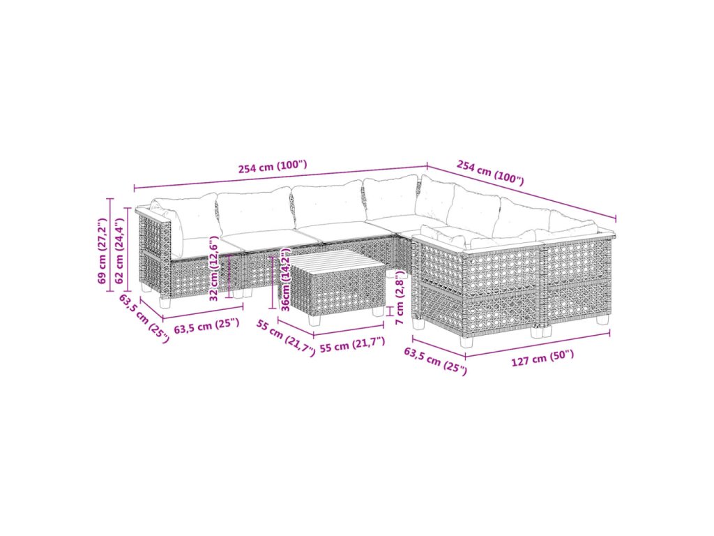 9dílná zahradní sedací souprava s poduškami černá polyratan 3261776