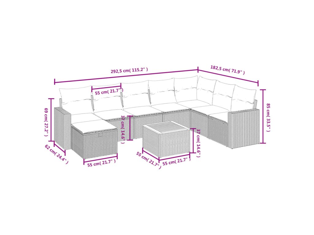 Tato zahradní sedací souprava je dokonalým doplňkem vaší zahrady, terasy nebo dvorku a poskytne vám pohodlné a příjemné místo, kde si můžete povídat s rodinou a přáteli nebo jen tak odpočívat a užívat si pobyt venku.