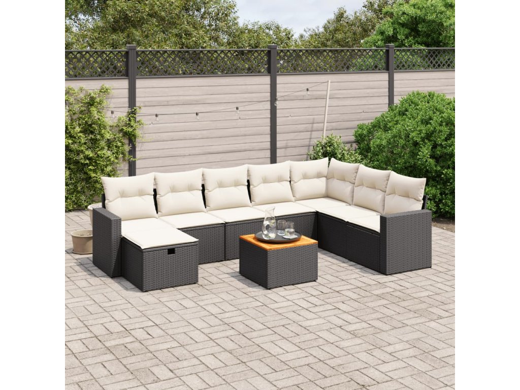 9dílná zahradní sedací souprava s poduškami černá polyratan 3264871