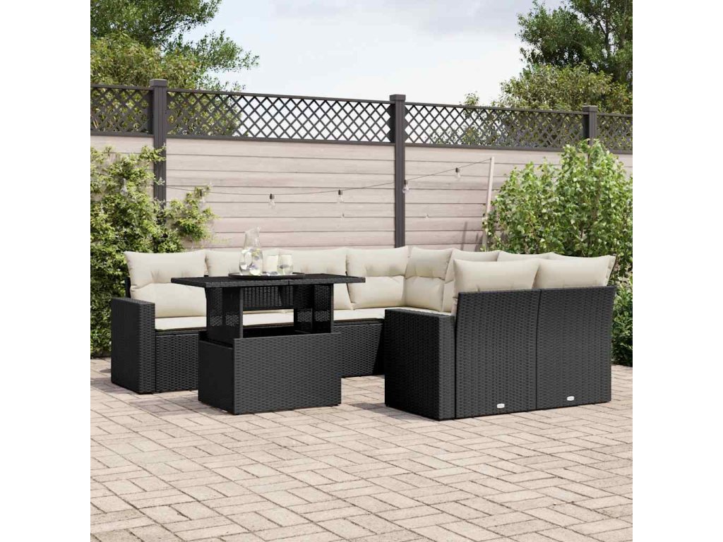 9dílná zahradní sedací souprava s poduškami černá polyratan 3267166