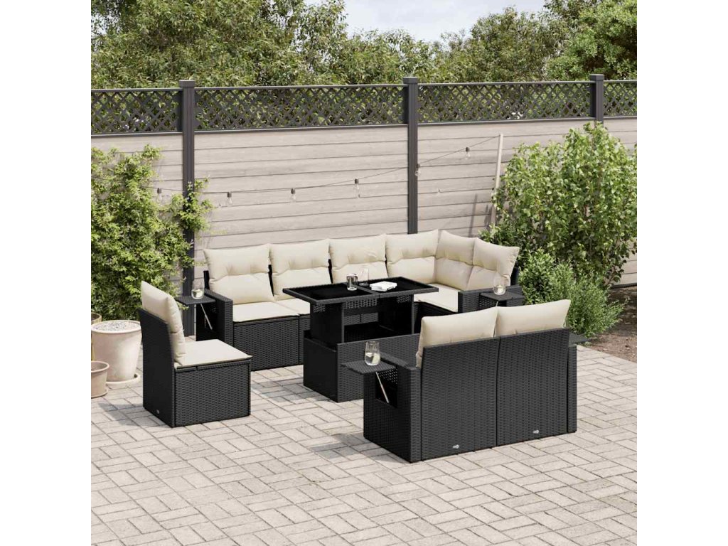 9dílná zahradní sedací souprava s poduškami černá polyratan 3268036