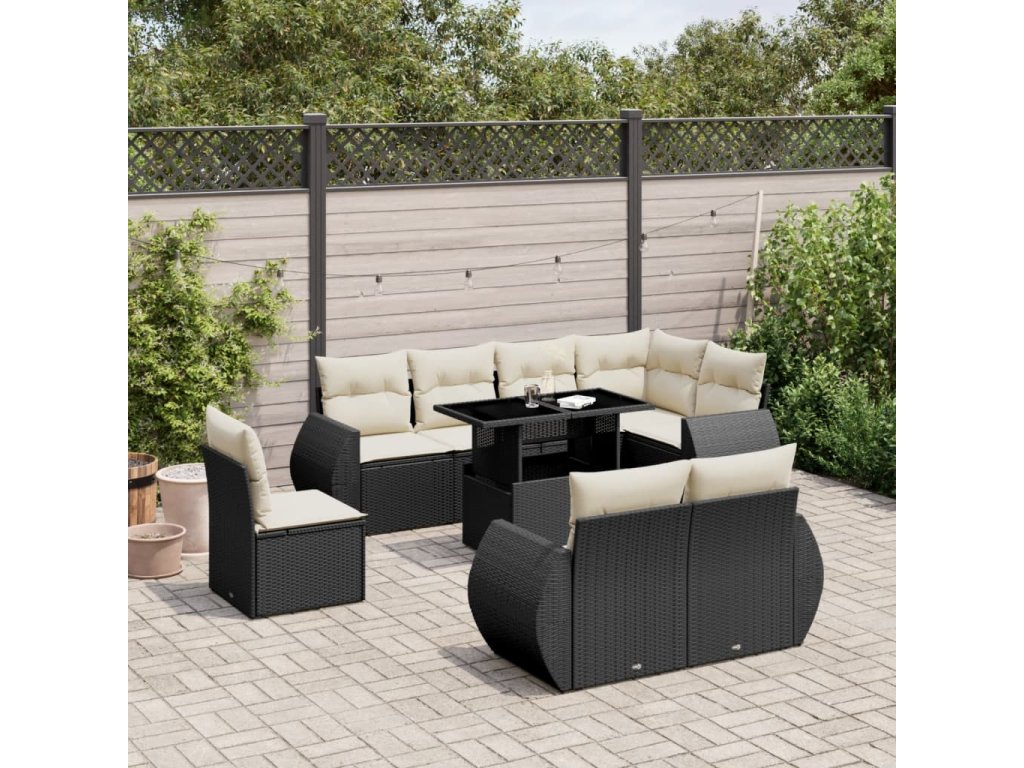 9dílná zahradní sedací souprava s poduškami černá polyratan 3268666
