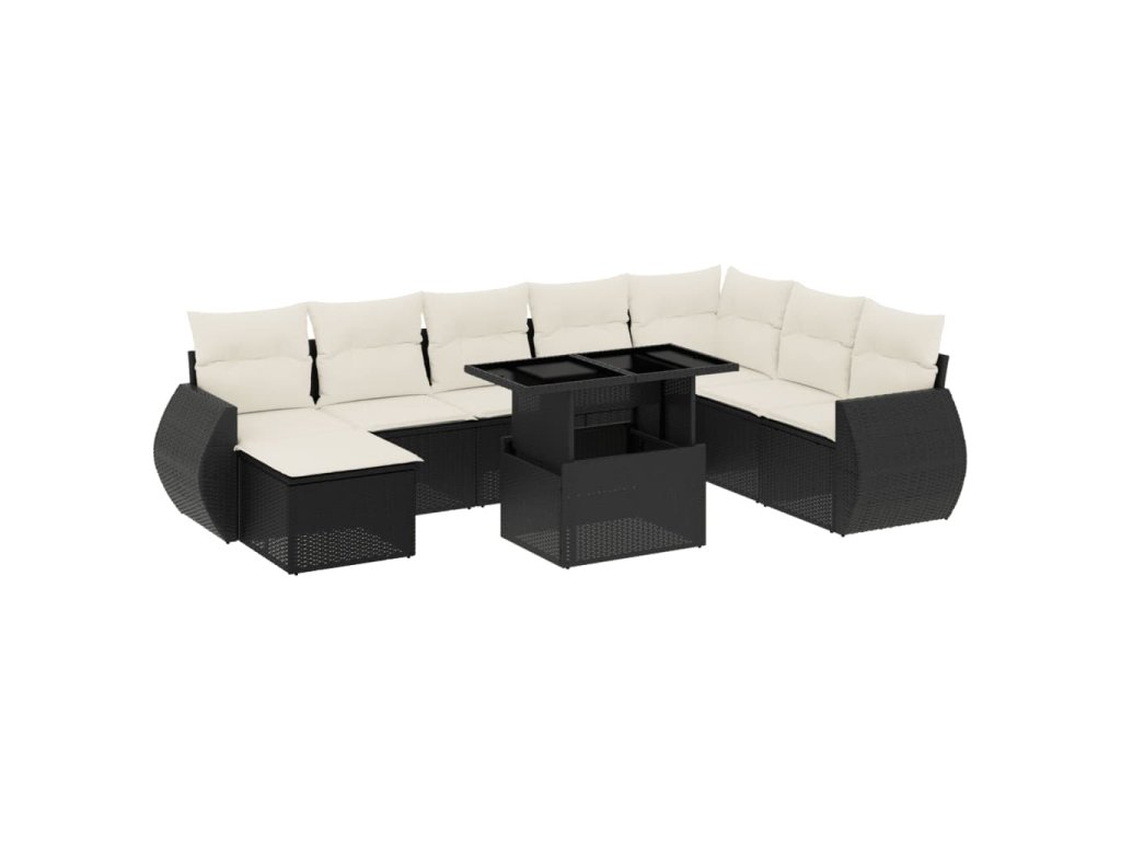 9dílná zahradní sedací souprava s poduškami černá polyratan 3268726