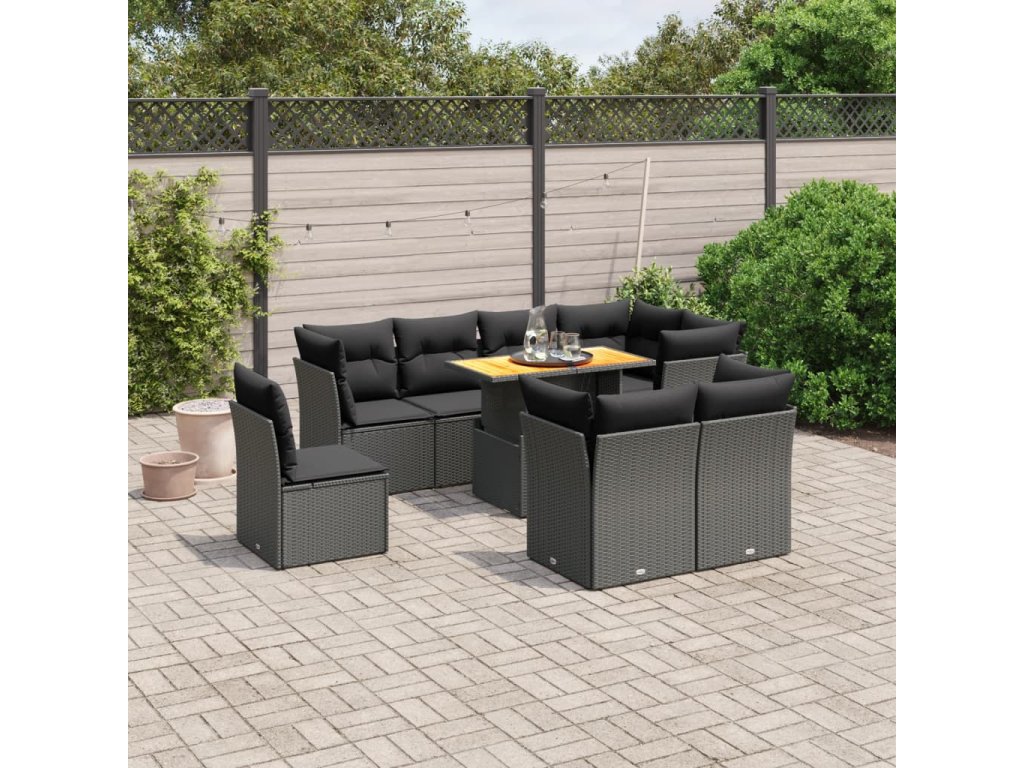 9dílná zahradní sedací souprava s poduškami černá polyratan 3270929