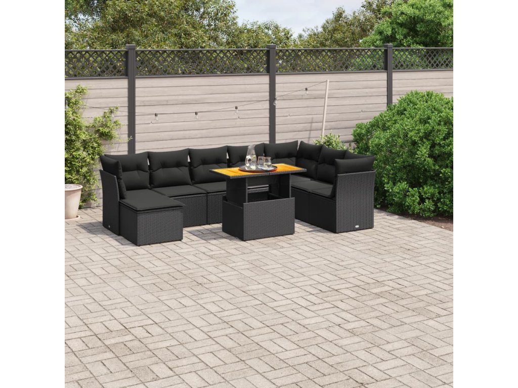 9dílná zahradní sedací souprava s poduškami černá polyratan 3270971