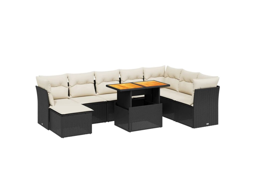 9dílná zahradní sedací souprava s poduškami černá polyratan 3270972
