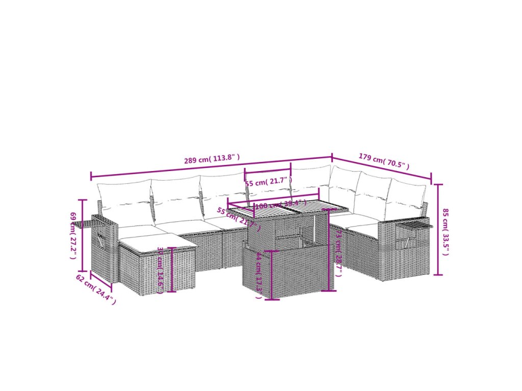 Tato zahradní sedací souprava je dokonalým doplňkem vaší zahrady, terasy nebo dvorku a poskytne vám pohodlné a příjemné místo, kde si můžete povídat s rodinou a přáteli nebo jen tak odpočívat a užívat si pobyt venku.