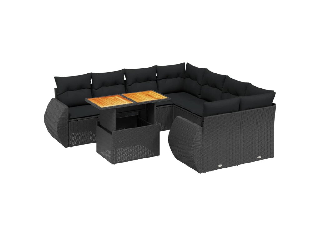 9dílná zahradní sedací souprava s poduškami černá polyratan 3272119