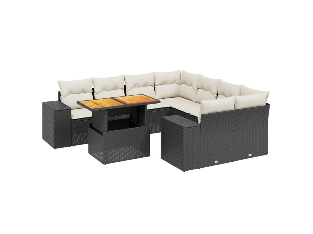 9dílná zahradní sedací souprava s poduškami černá polyratan 3272561