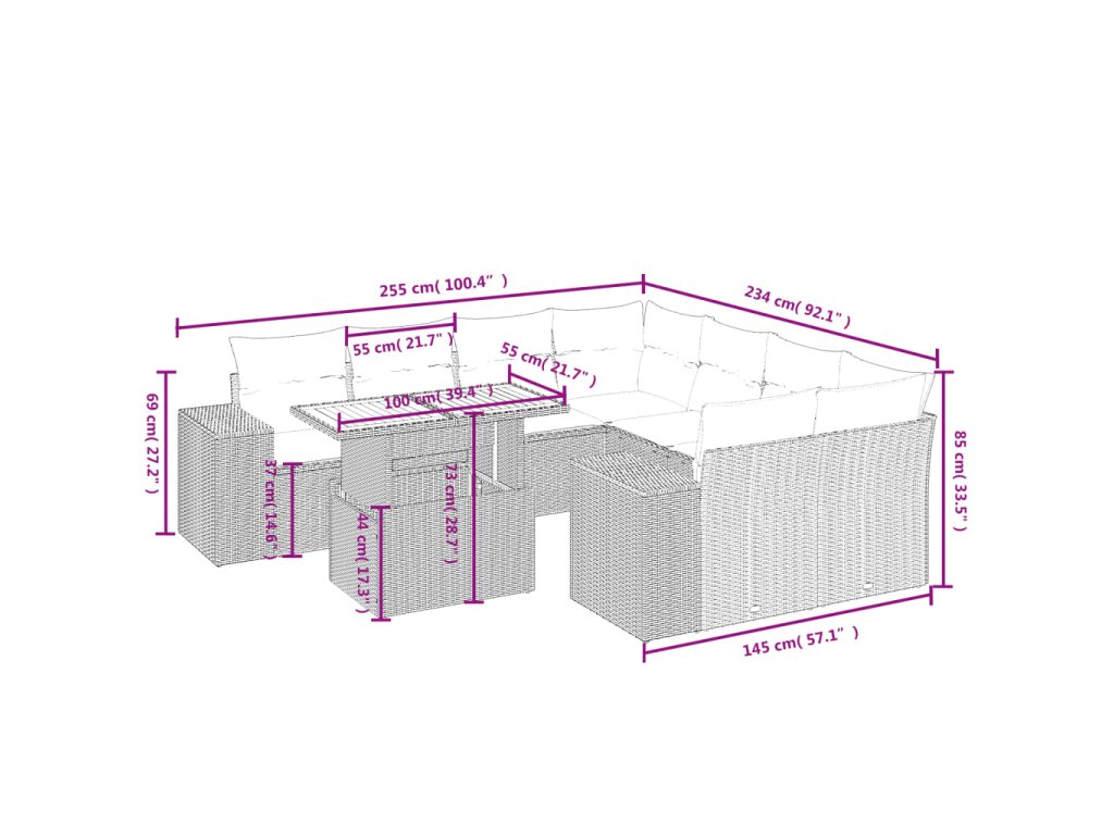 Tato zahradní sedací souprava je dokonalým doplňkem vaší zahrady, terasy nebo dvorku a poskytne vám pohodlné a příjemné místo, kde si můžete povídat s rodinou a přáteli nebo jen tak odpočívat a užívat si pobyt venku.