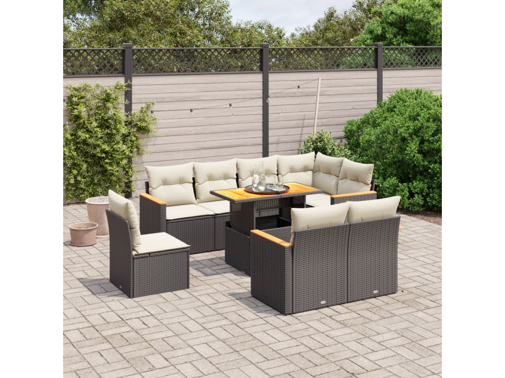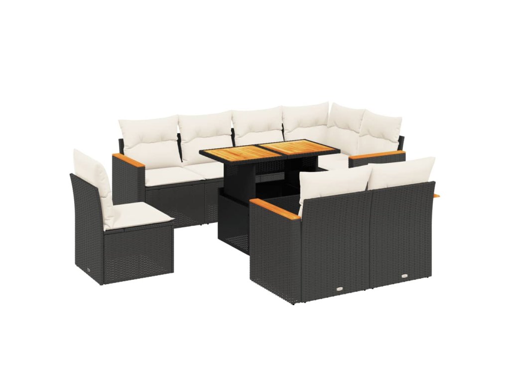 9dílná zahradní sedací souprava s poduškami černá polyratan 3273170